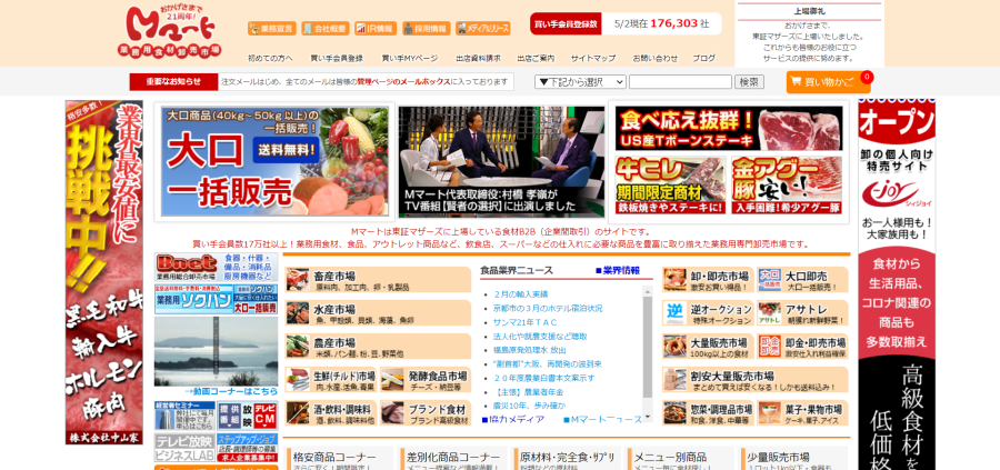 Mマートは、業務用食材や厨房機器などに特化した商材仕入れサイトです。